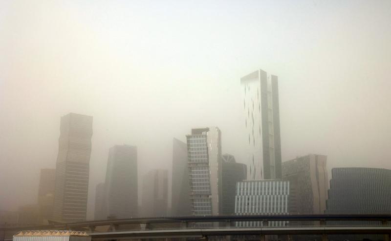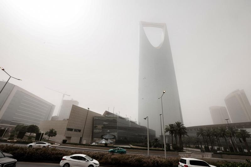 Op digitale borden langs de snelwegen naar Riyad worden automobilisten aangespoord om hun snelheid te verlagen wegens het slechte zicht door de storm. De auto’s en gebouwen in het stadscentrum zitten onder het zand. De iconische torens van Riyad zijn van op een paar honder meter onzichtbaar, merkte een verslaggever van het Franse persagentschap AFP op.