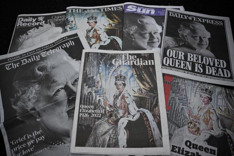 Op de voorpagina’s van Britse kranten gaat het vrijdagochtend maar om één ding: de dood van koningin Elizabeth. Met paginagrote recente of juist decenniaoude afbeeldingen van de Queen wordt haar leven herdacht. «We hebben van u gehouden, mevrouw», schrijft The Sun. «U deed uw plicht», meldt The Daily Star.