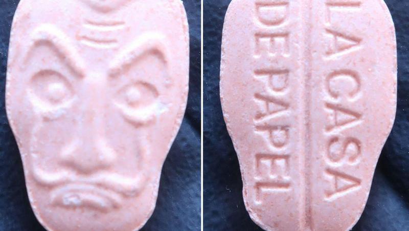 Zaterdag werd er een tweede xtc-pil ontdekt met dezelfde gevaarlijke hoeveelheid MDMA. Die had als logo de beeltenis van Salvador Dali, beter bekend als het masker van ‘Casa de Papel’.