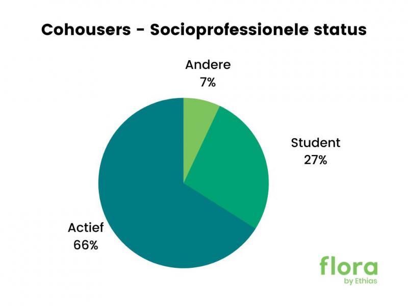 Elke maand een loon ontvangen betekent nog niet dat cohousing voorgoed verleden tijd is. Bijna 7 van de 10 cohousers (66%) zijn loontrekkend. Cohousings worden hoofdzakelijk bewoond door mensen die actief zijn in het beroepsleven (57%) of door studenten (26%). Slechts 14% van de cohousings omvat zowel beroepsactieve personen als studenten. Uit de enquête blijkt ook dat cohousers beduidend jonger zijn dan gewone huurders. 85% van de bij Flora verzekerde cohousers is tussen 20 en 29 jaar oud, terwijl van de bij Flora verzekerde gewone huurders slechts 43% jonger is dan 29 jaar. «Nu de vastgoedprijzen en de huurprijzen blijven stijgen, zien we hoe steeds meer jonge beroepsactieve mensen na hun studie hun eerste woning samen huren», zegt Jessica Lion, directeur van Flora by Ethias.