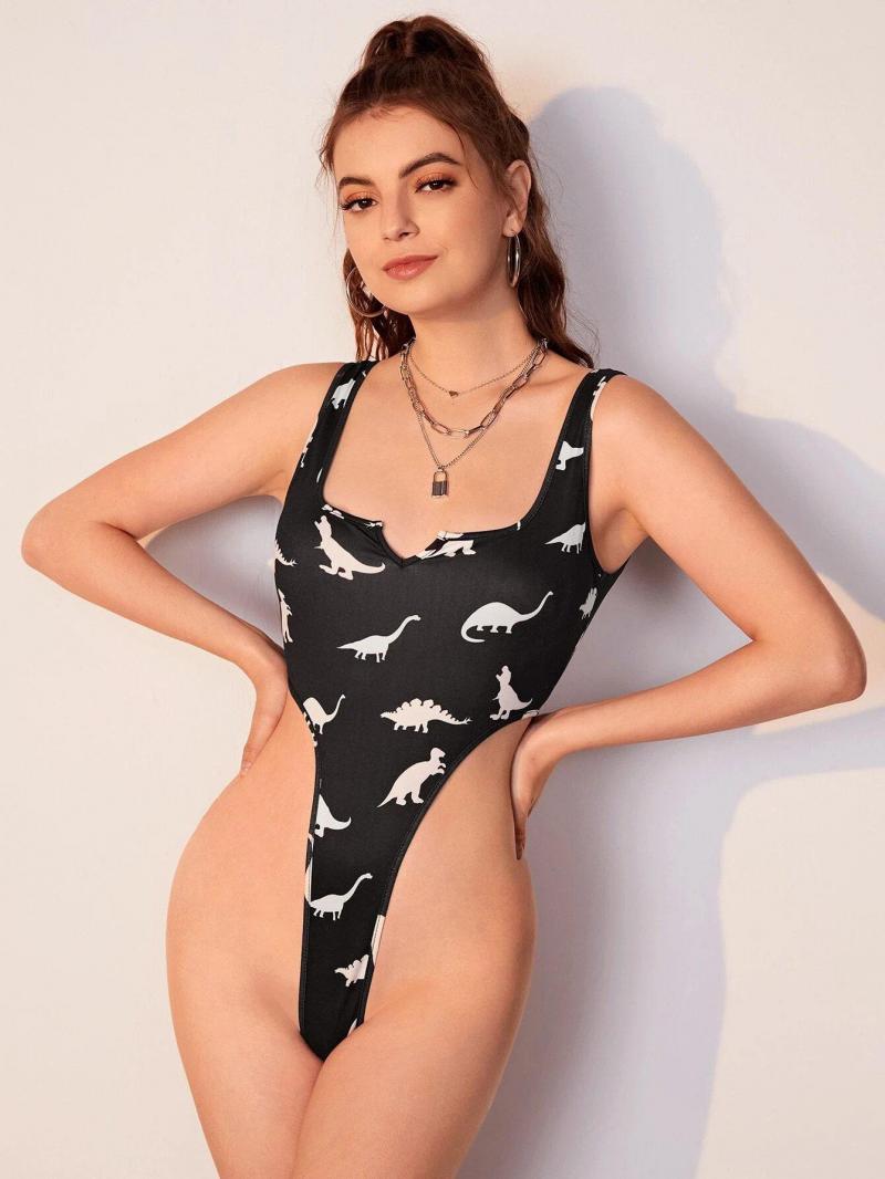 Het gaat om een hoog uitgesneden bodysuit met dinosaurusmotief die voor 4 euro verkocht wordt door de online kledingwinkel SHEIN. Het ontwerp is behoorlijk smal naar beneden toe, wat mensen doet vermoeden dat het pijnlijk moet zijn om te dragen.