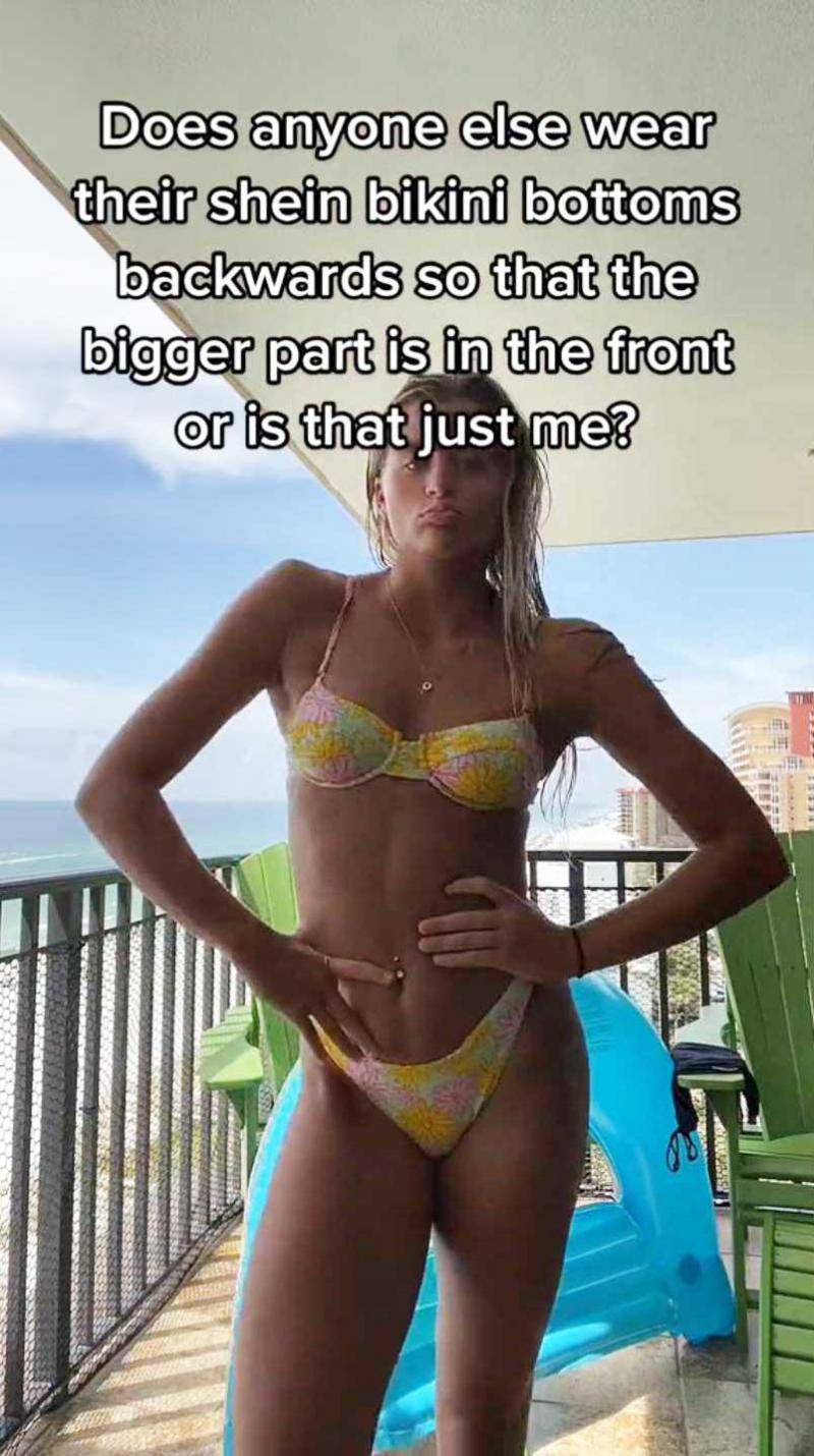 Neva Clark vroeg zich onlangs op TikTok af of er nog vrouwen zijn die bikinibroekjes van de Chinese online winkelketen SHEIN achterstevoren dragen zodat er vooraan meer bedekt wordt. Ze illustreerde haar punt meteen in de video, die intussen al bijna 4 miljoen keer bekeken werd.