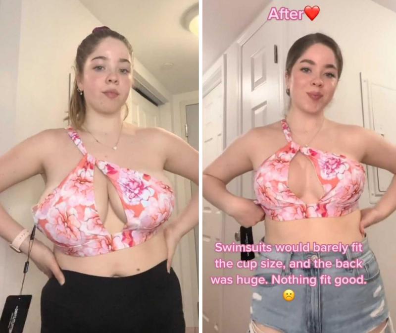 Michelle Olivares werd iets te rijkelijk bedeeld door Moeder Natuur en begon dat als een probleem te ervaren. Zelfs in de grootste bikinimaten werden haar borsten niet voldoende bedekt, wat aan haar zelfvertrouwen knaagde. «Werkelijk niets kon mijn borsten op hun plaats houden», zucht ze. Michelle besloot om een borstverkleining te ondergaan in Chicago. Onlangs plaatste ze het straffe resultaat op TikTok. «Ik kan het nog steeds niet geloven», klinkt het met een lach op haar gezicht.