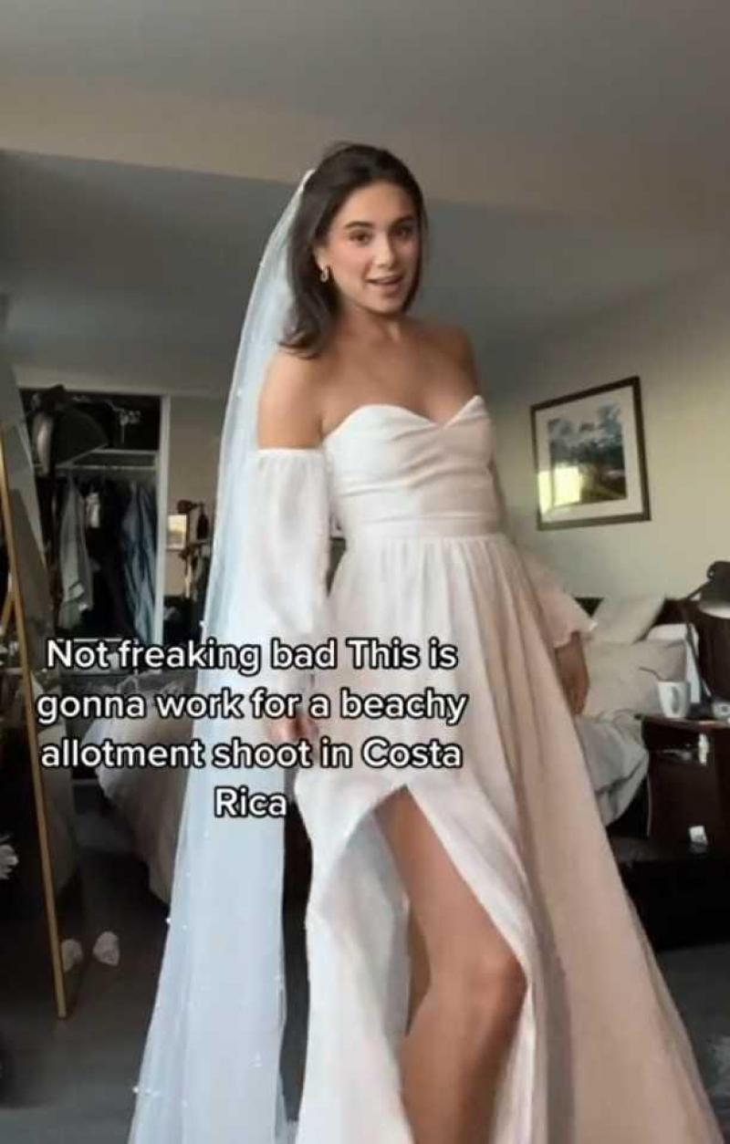 Miranda Anderson is een trouwfotografe die onlangs een huwelijksshoot deed in Costa Rica. Ze voorzag zelf het trouwkleed voor het koppel, en aangezien er (ook) in het water geposeerd moest worden, mocht de jurk niet te duur zijn. Ze kocht een trouwkleed inclusief sluier in de Chinese online winkelketen SHEIN voor omgerekend 92 euro. «Niemand gaat er iets van merken», is ze zelf verbaasd door het resultaat.