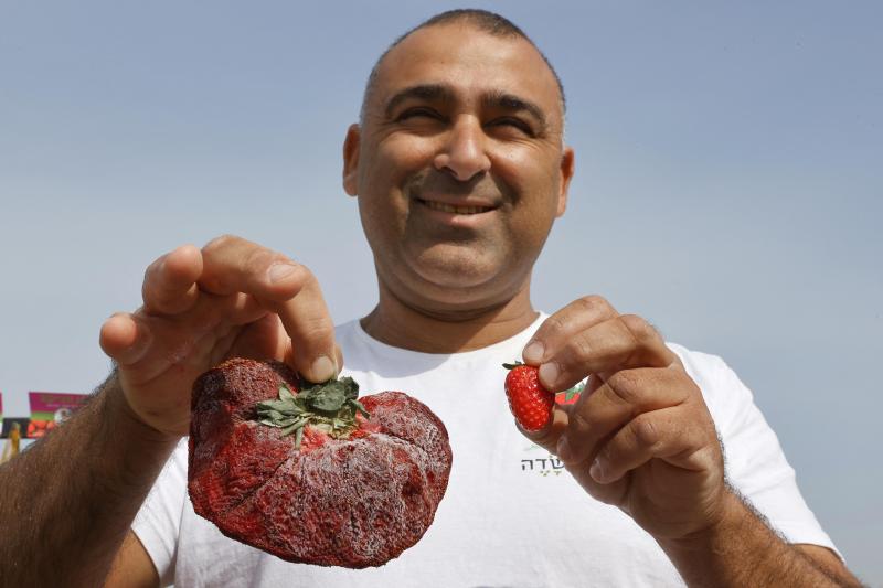 Het was een ongewoon kille winter geweest begin 2021 in Israël. Die ijzige koude had het rijpproces van de aardbeien van boer Chahi Ariel een hoop vertraagd, waardoor zijn vruchten maar gewicht bleven bijkweken. Ariel hoopte meteen dat hij een recordaardbei beethad, toen hij vorig jaar ontdekte dat een van zijn aardbeien was uitgegroeid tot een reus. De vrucht bleek 18 centimeter lang te zijn en had een omtrek van 34 centimeter.