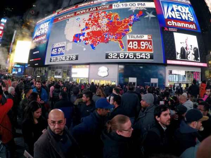 De Verenigde Staten werden gisterenavond ingekleurd met het rood van de Republikeinen en hun kandidaat Donald J. Trump. Ondertussen treurden de supporters van Clinton over de verloren verkiezing. Bij sommigen, zoals Lady Gaga, maakte de droefenis plaats voor frustratie.