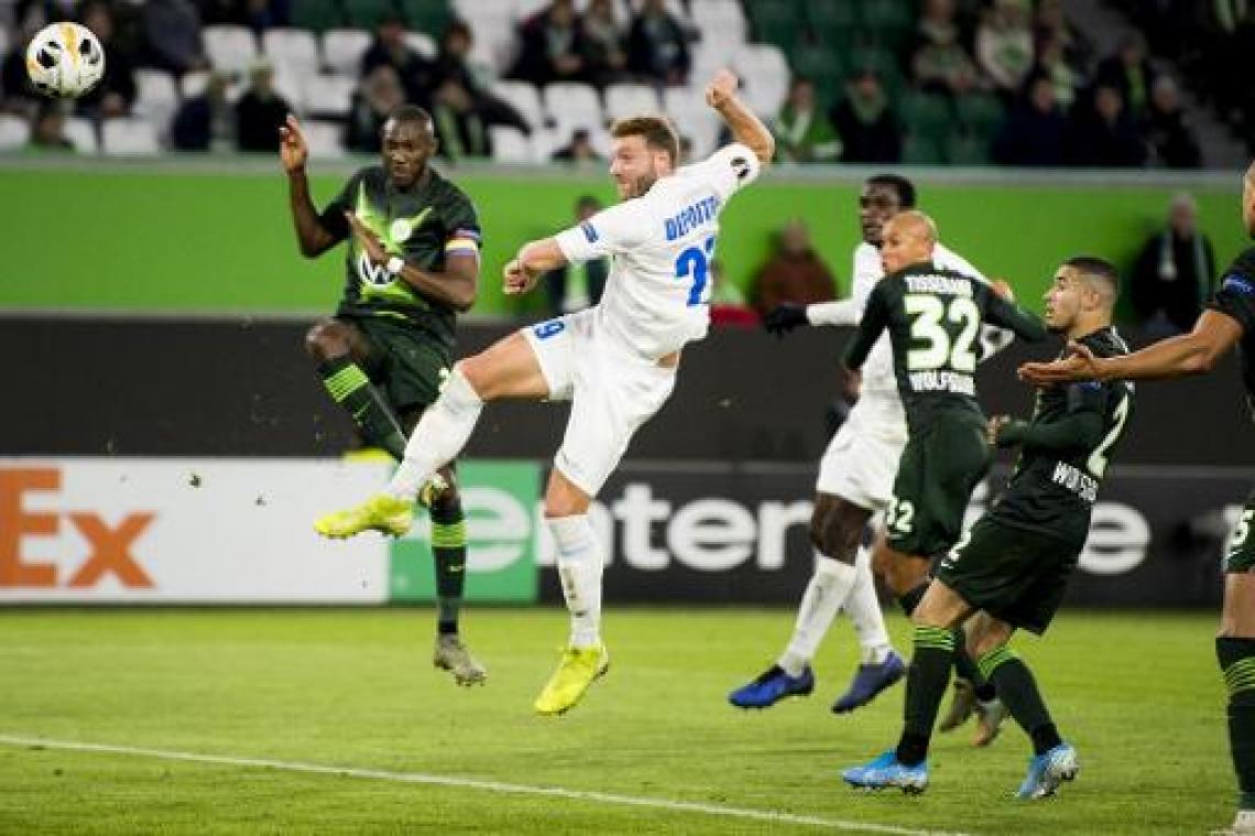AA Gent heeft donderdag de leiding genomen in groep I door met 1-3 (rust 1-0) te gaan winnen op het veld van het Duitse Wolfsburg. De Buffalo's tellen nu acht punten uit vier wedstrijden. Wolfsburg volgt met vijf punten. Het Oekraïense Oleksandriya en het Franse Saint-Etienne, die donderdag 2-2 gelijkspeelden sluiten de groep af met allebei drie punten. Alleen als Saint-Etienne en Oleksandriya allebei hun laatste twee wedstrijden winnen, grijpt Gent nog naast een plaats in de zestiende finales. De wedstrijd begon niet goed voor de Gentenaren. Wolfsburg startte sterk en na twintig minuten kon Joao Victor hard binnen knallen voor de 1-0. Gent moest even bekomen en kon pas na de rust reageren. Roman Yaremchuk nam een slecht weggewerkte bal in één tijd heerlijk op de slof en liet doelman Pavao Pervan kansloos (50.). Na 65 minuten mocht de Belgische ploeg opnieuw vieren. Laurent Depoitre klom hoog met zijn voet en werkte de hoekschop van Vadis Odjidja handig binnen. Gent toonde zich efficiënt en een kwartier voor tijd maakte Michael Ngadeu-Ngadjui er 1-3 van, op alweer een hoekschop. Wolfsburg dreigde nog wel en zag onder meer een poging op de lijn gered worden door Odjidja, maar kon de Gentse overwinning niet meer vermijden.