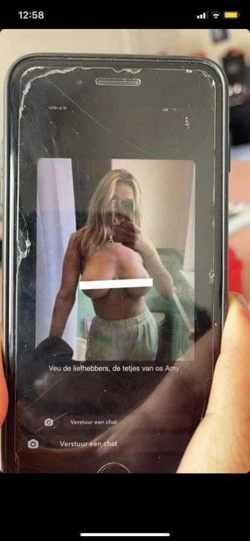 Vorig jaar werd er in Snapchat-groepen een foto gedeeld van een blonde vrouw die in de badkamer met ontblote borsten een selfie neemt. «Voor de liefhebbers: de tetjes van ons Amy», stond er onderaan bijgeschreven. Amy gaf destijds al aan dat het geen foto van haar was, maar nu gaat ze verder in detail.