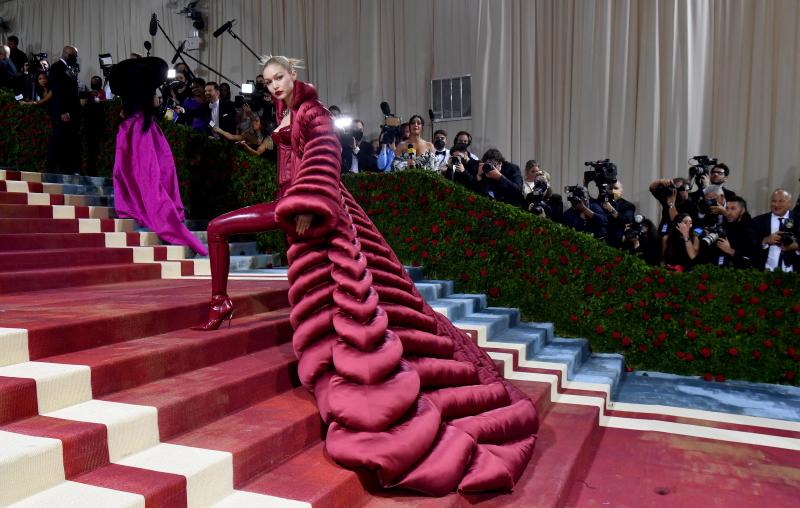 Gigi Hadid had de loodzware taak om een pufferjas van Versace te dragen op de rode loper. «De zwaarste outfit die ik ooit gedragen heb naar het Met Gala. Ik kan niet eten in deze jas», vertelde ze aan Vogue.
