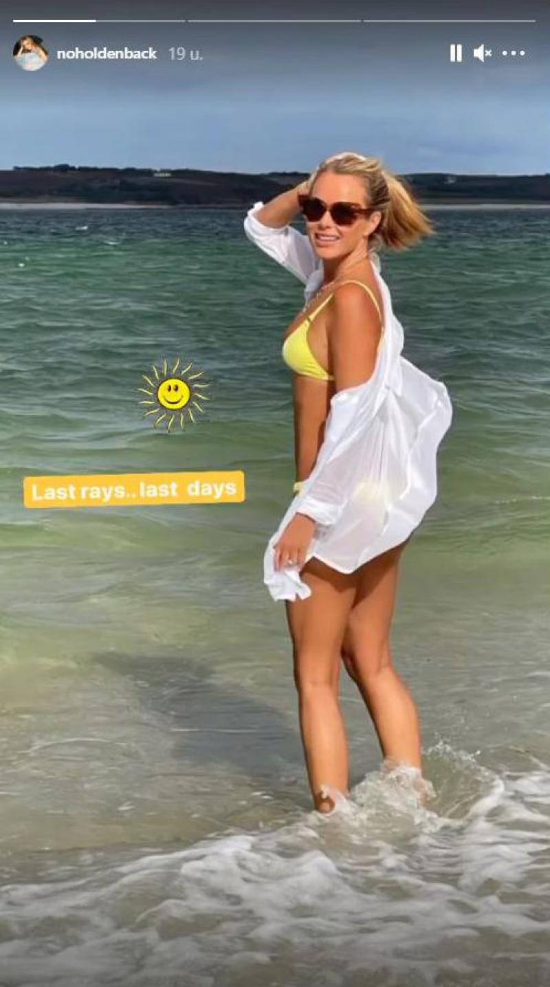De 50-jarige radiopresentatrice geniet momenteel nog even van vakantie voordat ze maandag weer aan het werk gaat. Ze deelde een foto op Instagram waarop ze in een gele bikini flaneert. «De laatste zomermomentjes. Maandag ben ik opnieuw paraat!», schrijft ze bij het kiekje.