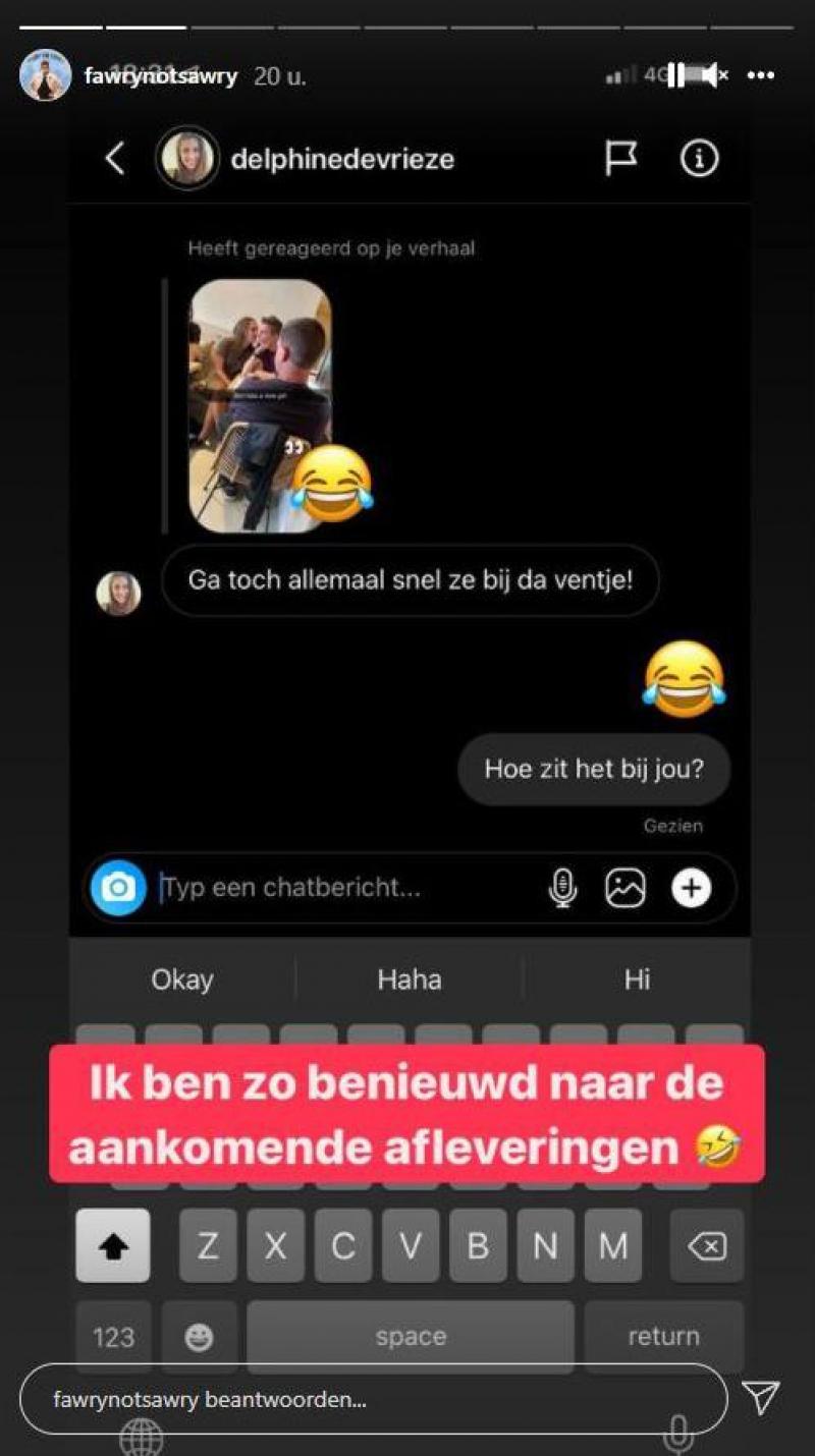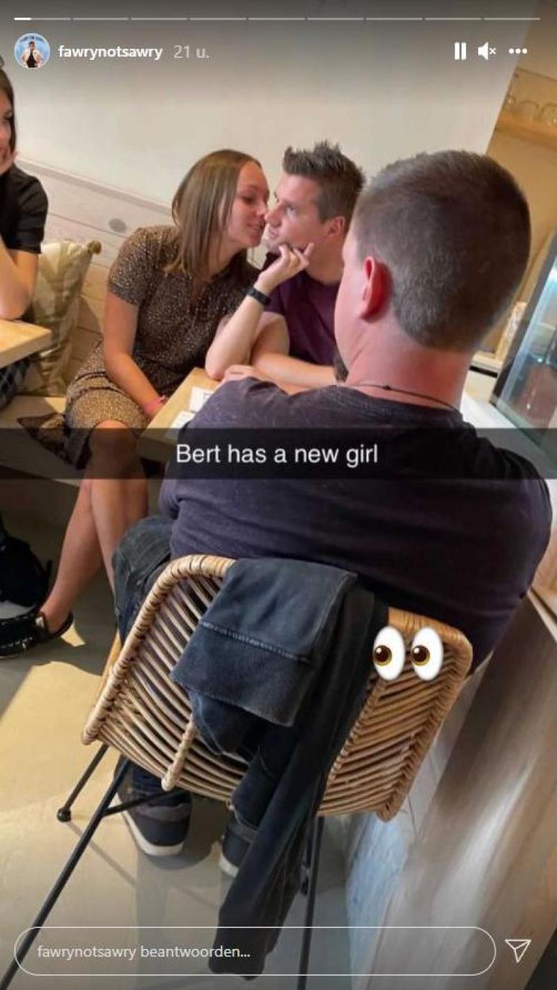 Nu is er een foto opgedoken waarop een onbekende vrouw naast Bert zit en hem een kus lijkt te geven. Reality-insider Fawry Not Sawry deelde de foto op Instagram en lokte zo een reactie uit bij Delphine. «Dat gaat toch allemaal snel hoor bij dat ventje», reageert ze.