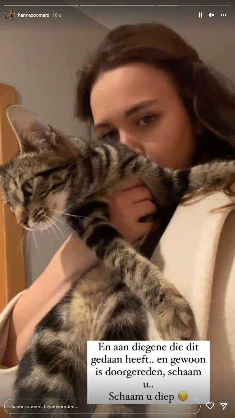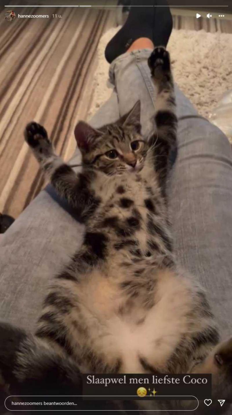 Treurig nieuws ten huize Hanne Zoomers. Haar kat Coco werd aangereden en heeft het niet overleefd. «Slaapwel, m’n liefste Coco», schrijft Hanne op Instagram bij een foto van haar en Coco.