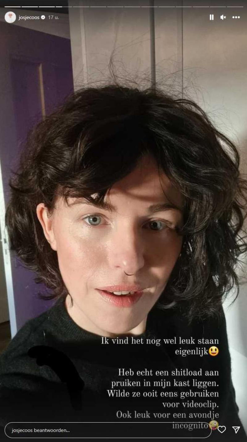 Maar wat als Josje nu eens een ros of donker kapsel had? Wel, dat testte de 36-jarige zangeres uit met enkele pruiken en het resultaat deelde ze op Instagram. «Ik vind het nog wel leuk staan eigenlijk! Ik heb echt heel veel pruiken in mijn kast liggen die ik ooit eens wilde gebruiken voor een videoclip. Ook leuk voor een avondje incognito», schrijft ze erbij.