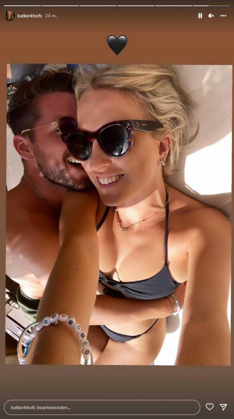 Kat Kerkhofs en Rode Duivel Dries Mertens genieten momenteel van een welverdiende vakantie en vertoeven op Ibiza, waar het nu zomers warm is met temperaturen rond de 29 graden. Ze aten een heerlijk hapje op het strand en maakten een intieme selfie van hun tweetjes in zwemkledij.