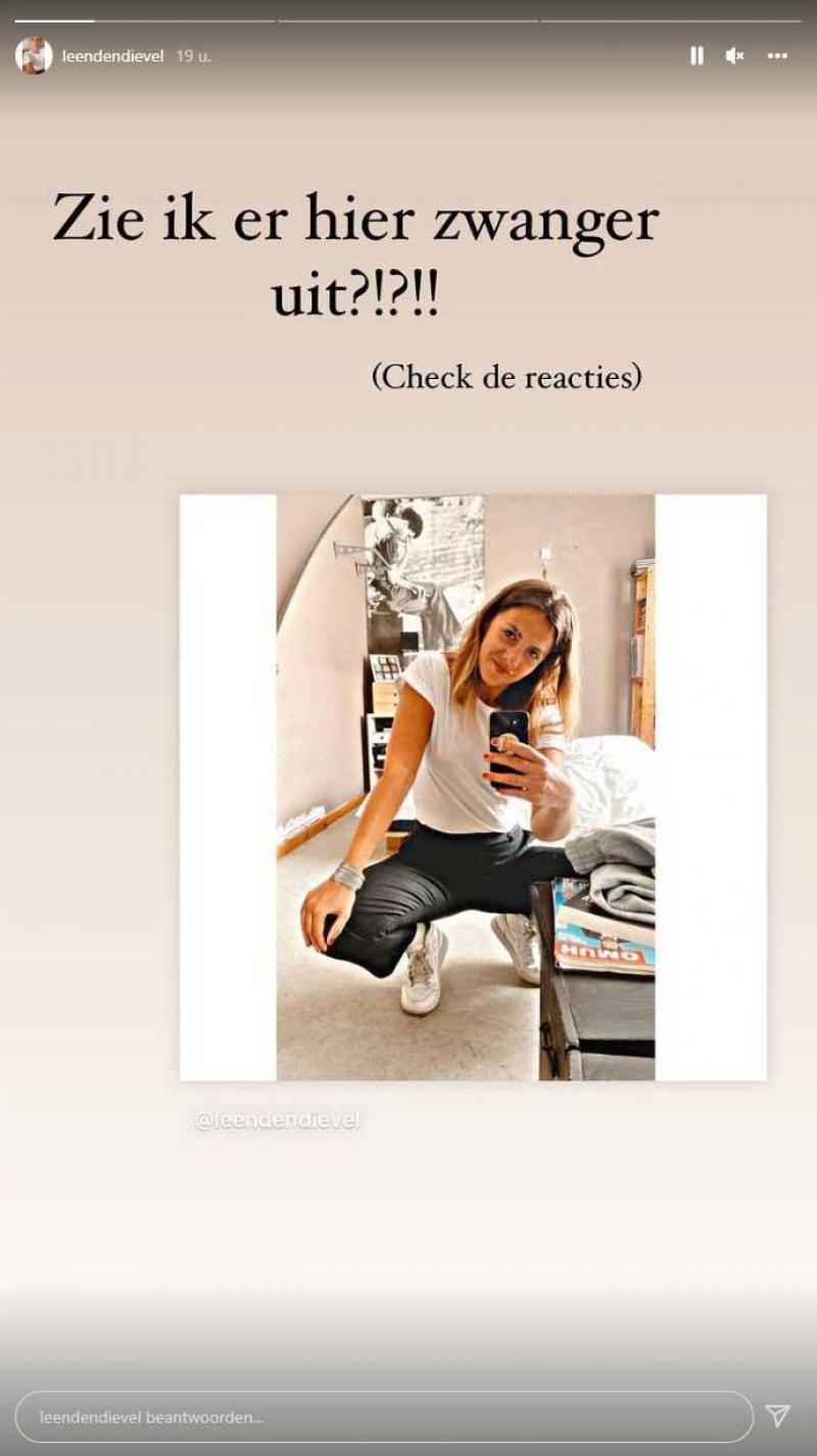 Haar volgers dachten meteen aan een nieuw boek of een baby. «Nieuw boek? Of een baby’tje op komst?», «Ik gok op een baby», «Zeker iets wat je gelukkig maakt, want je straalt», en «Kindje op komst?», lezen we in de reacties. Leen verbaasde zich vervolgens op haar Instagram Stories over de commentaren. «Zie ik er hier zwanger uit?!», klonk het.