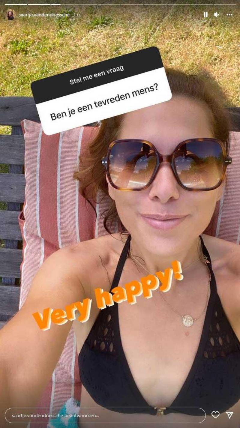 Saartje Vandendriessche (47) hield vandaag op Instagram een vragenuurtje voor haar volgers. Eén van hen vroeg of ze soms topless zont. De voormalige Eén-omroepster en ‘Vlaanderen Vakantieland’-presentatrice besloot om er met een foto op te reageren en zodoende duidelijk te maken dat het antwoord positief is. «Altijd!», knipoogt ze erbij.