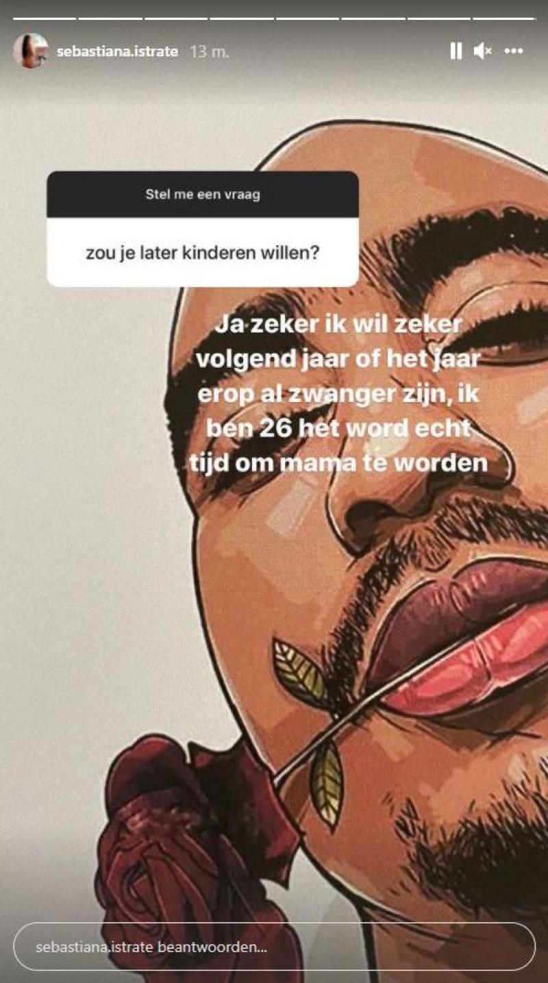 Wel weten we dat de 26-jarige brunette uit Aartselaar een vurige kinderwens heeft die ze zo snel mogelijk in vervulling ziet gaan. Iemand vroeg haar op Instagram immers of ze kinderen wil. «Ja zeker! Ik wil zeker volgend jaar of het jaar erna al zwanger zijn. Ik ben 26, het wordt echt tijd om mama te worden», antwoordde ze daarop.