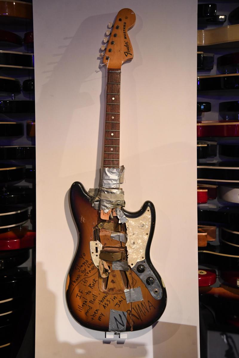 De geschatte waarde van de gitaar was 200.000 dollar, maar uiteindelijk ging ze voor meer dan het dubbele onder de hamer. Dat heeft veilinghuis Julien’s zondag bekendgemaakt. Cobain sloeg de 1973 Fender Mustang stuk bij een optreden tijdens de eerste Amerikaanse tour van zijn band Nirvana in 1989. De gitaar was een van de meer dan 1.500 stukken die van eigenaar wisselden op de driedaagse rock-’n-rollveiling zondagavond lokale tijd.