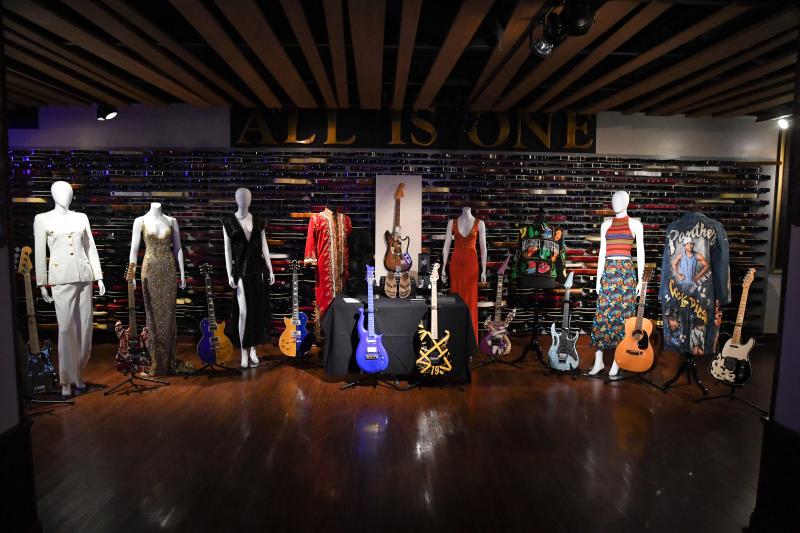 Een met diamanten bezet gouden horloge van Elvis Presley uit 1972 bracht 256.000 dollar op, een vleugelpiano van Bob Dylan 217.000 dollar en een blauwe elektrische gitaar van Prince was goed voor 192.000 dollar.