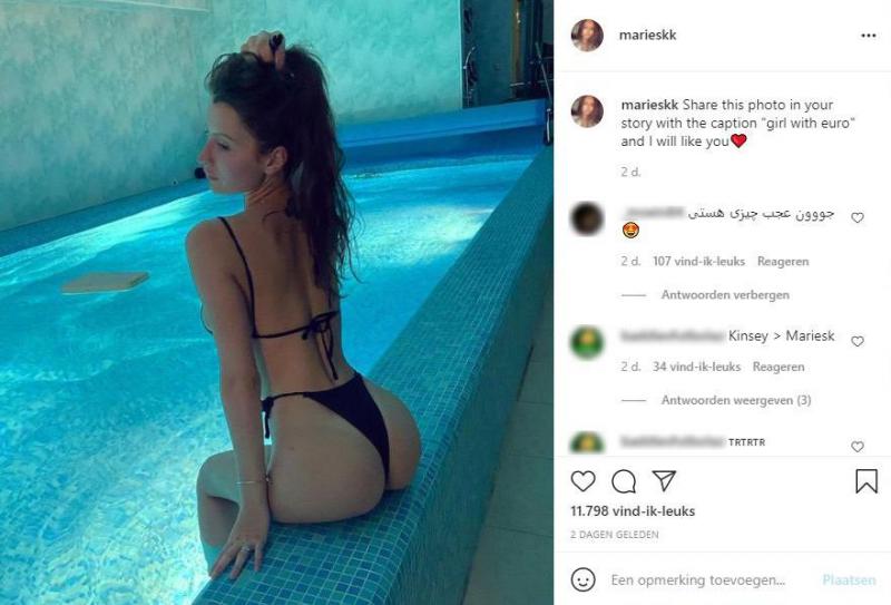 Intussen raakte bekend dat het om Maria Shumilina gaat, een 20-jarige Instagramster die plotsklaps 73.000 volgers heeft. Ze geniet duidelijk van die aandacht en is nog niet uitgepraat. Daarom deelde ze een bikinifoto die ze nu de wereld rond wil laten gaan. «Deel deze foto in je Instagramverhaal met bijschrijft ‘meisje met euro’ en ik zal je liken», schrijft ze erbij.