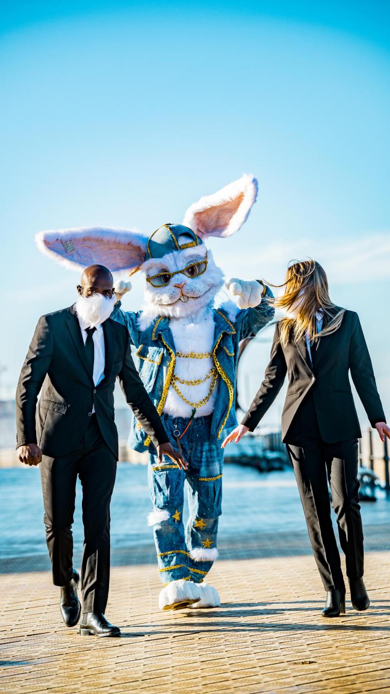 «De Oostendenaren moesten zich vanochtend twee keer in de ogen wrijven. Er dook immers plots een levensgroot konijn op in het straatbeeld», klinkt het in een persbericht. «Konijn kan niet wachten om nu vrijdag zijn intrede te maken in The Masked Singer en laat zich vandaag al zien aan Vlaanderen. Hij strandde vanochtend in Oostende, waar hij het casino onveilig maakte en op de dijk met voorbijgangers op de foto ging. Nadien zette hij zijn tocht verder. Waar duikt Konijn straks nog allemaal op? De meest badass Masked Singer van dit seizoen is in da hood en kaapt vandaag de socials van VTM!»