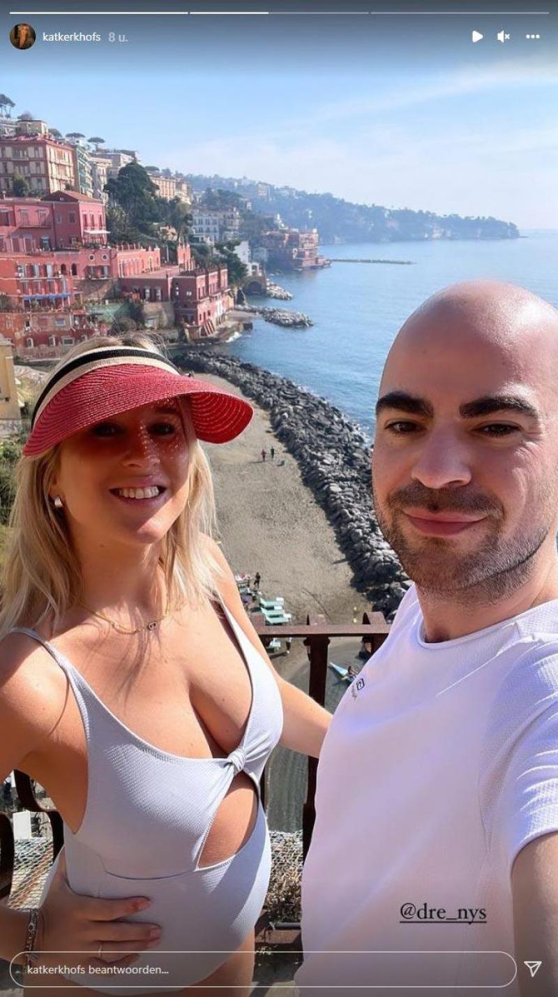 De goedlachse ‘Dancing with the Stars’-presentatrice geniet momenteel van de Italiaanse zon en deelde een foto waarop ze poseert met een goede vriend en haar bolle buik al goed te zien is.