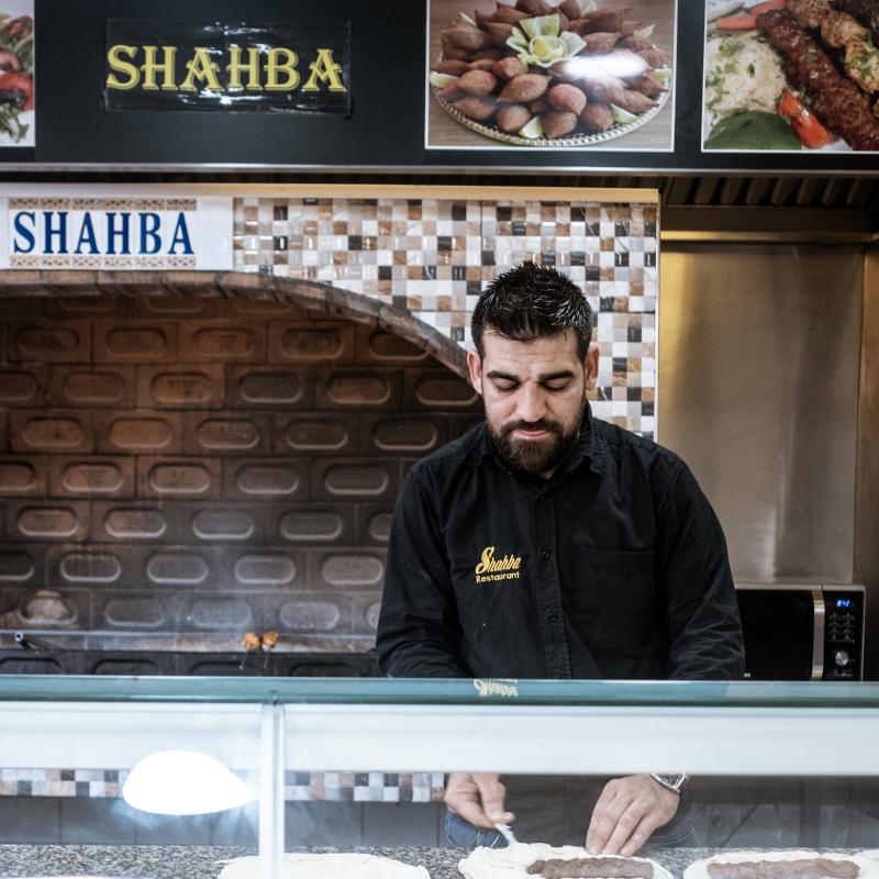 «In 2012 ben ik met mijn vader gevlucht uit Syrië. Na verschillende jobs in de horeca hebben we in 2018 besloten om een snackbar in Molenbeek over te nemen met ons spaargeld. De specialiteit van Shahba is gegrild kwaliteitsvlees bereid op houtvuur. Daarnaast bieden we typisch Syrische gerechten aan.»