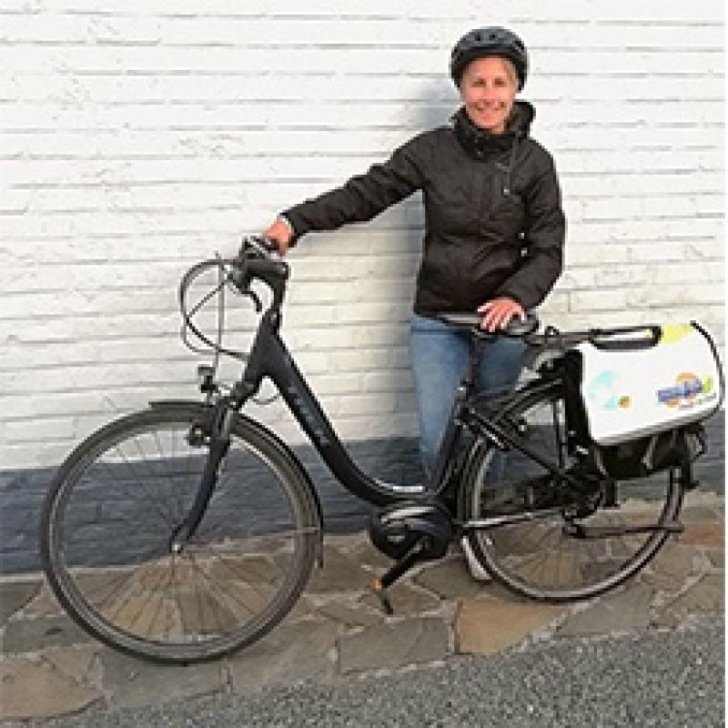 Lindsay leaset al twee jaar lang een elektrische bedrijfsfiets. Ik wou al langer aan sport doen, maar na het werk heb ik maar weinig tijd. Nu fiets ik elke dag 34 kilometer, van Deinze naar Gent en terug. Dankzij de fietsleasing kon ik een goede elektrische fiets uitkiezen, die 2.700 euro waard is. Met mijn gewone fiets was de afstand niet haalbaar, dan zou ik helemaal bezweet op het werk toekomen en te lang onderweg zijn. Per kilometer krijg ik ook nog een fietsvergoeding, waardoor ik de fiets, inclusief onderhoud, bijstand en verzekering, bijna gratis kan gebruiken. Mijn twee kinderen, van 5 en 9 jaar, breng ik ook met de fiets naar school. Ze fietsen gewoon zelf naar school waardoor ze sterker in het verkeer staan later. Bovendien krijgen ze van jongs af aan mee dat fietsen gezond is en een leuke manier is om je te verplaatsen. De wagen met de bijhorende files mis ik absoluut niet. Met de fiets ben ik even lang onderweg maar de rit is veel meer ontspannen. Wanneer ik thuiskom, is mijn knop helemaal omgedraaid'. Zelfs privé merk ik dat we steeds meer kiezen voor duurzaamheid en niet enkel op vlak van mobiliteit. Op deze manier draag ik mijn steentje bij aan het milieu.