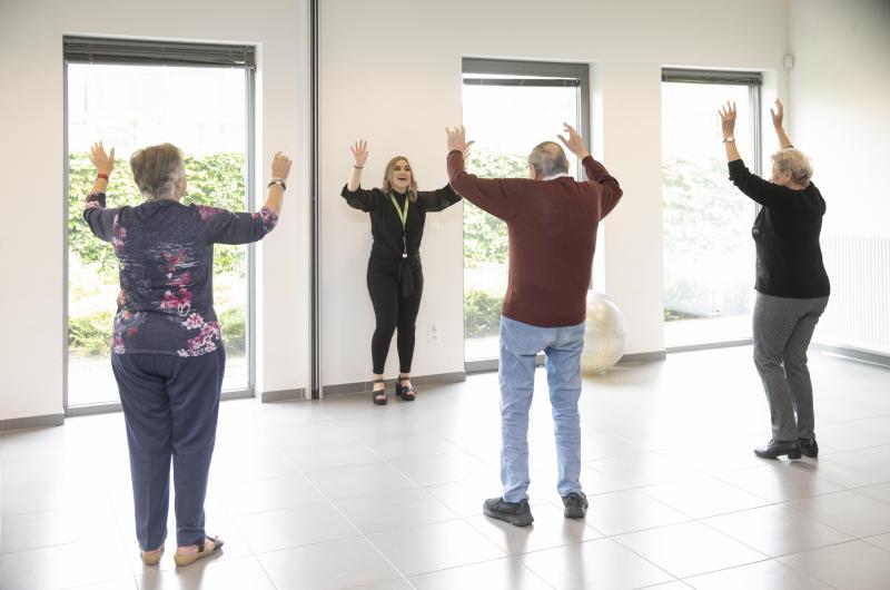Om fit te blijven heb ik een dans uitgewerkt voor mijn klanten. Ik leer hen stapje voor stapje deze dans aan. De muziek tovert een glimlach op hun gezicht. We lachen heel wat af tijdens onze gezamenlijke activiteiten.