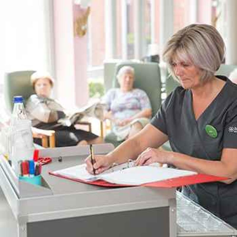 Als hoofdverpleegkundige vind ik het fijn en belangrijk om een goed contact te hebben met mijn bewoners. Wanneer ik iemands bloeddruk controleer, is dat een goed moment voor een kort gesprek. Zo kunnen bewoners iets aankaarten als ze dat wensen en hou ik een goed zicht op hun welzijn. Het belangrijkste is dat de bewoners zich hier thuis voelen.