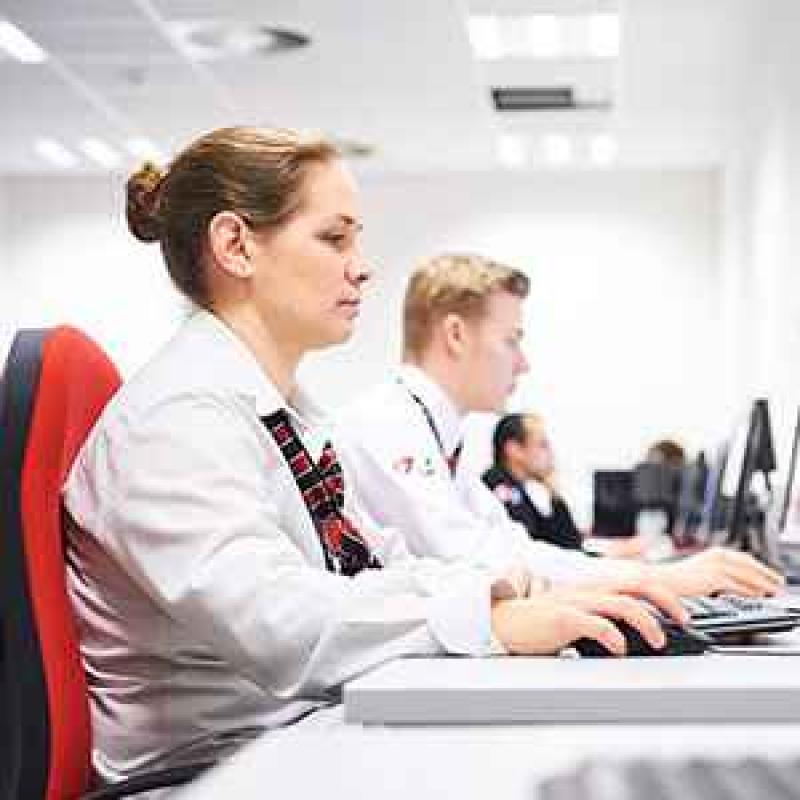 Met de X-Ray apparatuur screent ze de handbagage. Sofie zit hiervoor in een afgezonderde ruimte waar ze zich probleemloos kan concentreren.