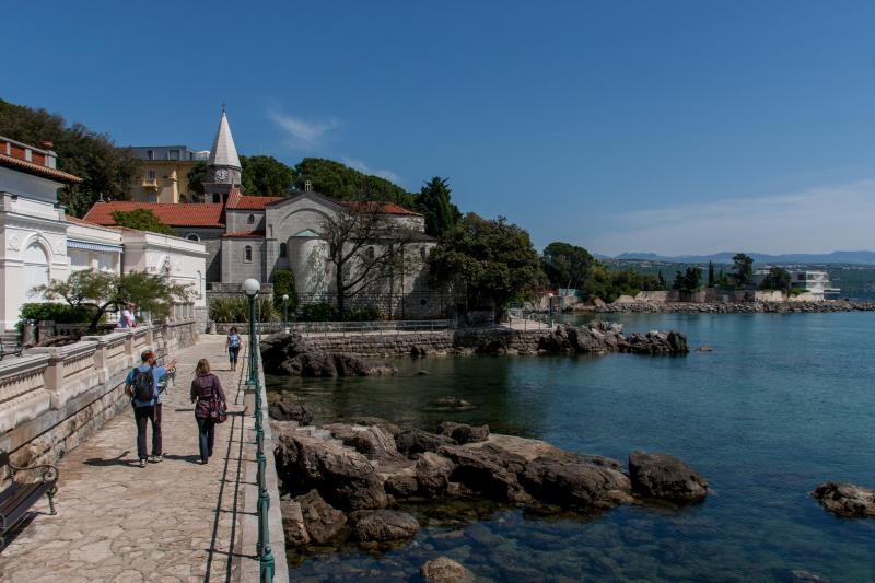 Om afscheid te nemen van het vasteland, kan je een nacht in Opatija verblijven. In deze kuststad waan je je in het elegante Wenen, maar dan met zicht op zee. Al in de negentiende eeuw kwam de aristocratie van heinde en ver naar Opatija om te genieten van de zee- en berglucht. Het wellnesstoerisme bereikte hier al vroeg een hoogtepunt. Zo vind je hier het oudste hotel van Kroatië: Remisens Premium Hotel Kvarner. De grootste troef van het charmante plaatsje is de veertien kilometer lange esplanade langs de kust. Dit is de plek om te zien en gezien te worden.