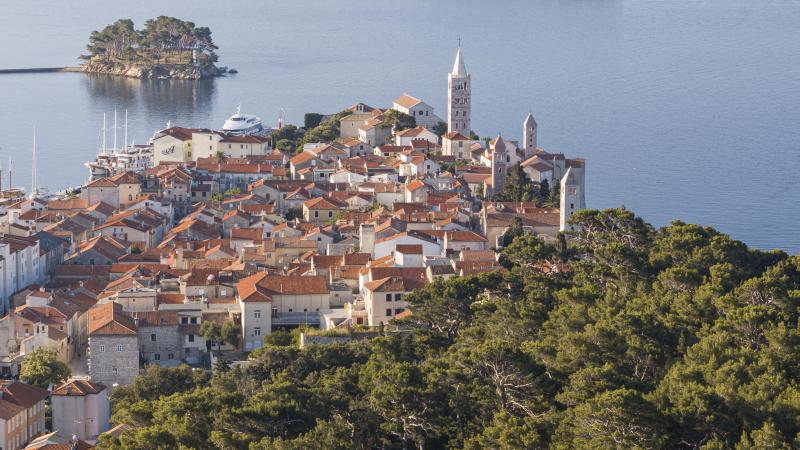 Rab heeft de allure van de Côte d’Azur, maar in een middeleeuws jasje. In het gelijknamige stadje wandel je in de oude straatjes en tussen de vier oude klokkentorens. In het sympathieke haventje huur je een boot of ga je mee met een kapitein om de geheime strandjes te verkennen. Een van de parels is het Zigeunerstrand. Je voelt je er vrij als een vogel tussen de okergele rotsen. De avonturier kan duiken naar een gezonken boot uit de Tweede Wereldoorlog of twee weken gaan kamperen met kajak en tent.