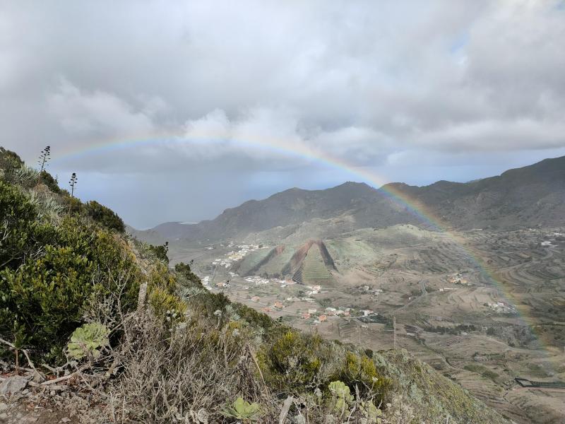 Gids Sandra leidt ons veilig en wel over de bergketen. Hoewel de meeste wandelpaden duidelijk zijn aangegeven, is een gids zeker een meerwaarde. Zo weet Sandra ons meer te vertellen over de rijke fauna en flora van het park. Ze wijst ons een familielid van de madroño aan, oftewel aardbeienboom, een boom die je nergens anders vindt. De vruchten lijken op gouden pompoentjes en smaken erg zoet. Nadat ze ons getrakteerd heeft op haar kennis over de natuur en weidse uitzichten op de oceaan en ravijnen, sluiten we af met een vloeibare traktatie in een lokale bar. Een niet te onderschatten voordeel van een plaatselijke gids!