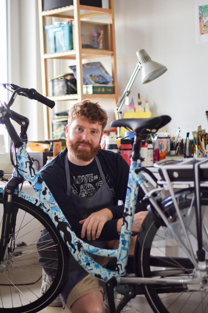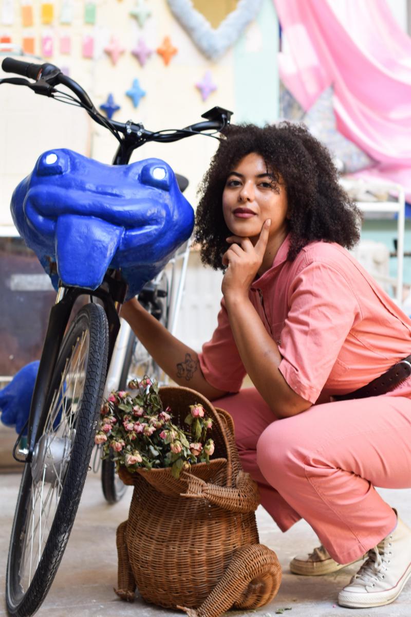 Bij de samenwerking zijn niet de minste Belgische namen betrokken. De wonderlijke illustraties van Brecht Vandenbroucke barsten van de referenties naar de pop- en gamecultuur en sieren de pagina’s van onder meer Le Monde en The New York Times. Geïnspireerd door haar Afro-Belgische roots reflecteert Loulou João met haar candy coated plastic personages op de uitdagingen en moeilijkheden in de echte wereld in haar digitale safe space, een universum die de lezers van The New York Times en The New Yorker en gebruikers van MTV en Spotify bekoort. Denk ook aan de populaire illustrator en cartoonist Eva Mouton, gekend van haar autobiografische geïllustreerde columns, die de fiets opvrolijkt met haar kleurrijke tekeningen.