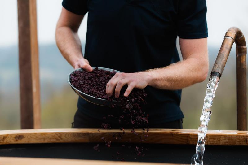 Het wijnbad wordt gevuld met pulp van de Monarch druif, die door de Wijngaard St. Martinus gebruikt wordt om onder andere de ‘Olivier’ te maken. Of de keuze voor de Monarch druif bewust is? «Jazeker», vertelt Stan Beurskens, eigenaar van St. Martinus. «In de schil van de blauwe druif zit een bijzondere stof, resveratol genaamd. Resveratrol is een krachtige antioxidant, die de huid beschermt tegen vervuiling en de negatieve gevolgen van UV-straling. Daarnaast verstevigt het je huid en vermindert het rimpels.»