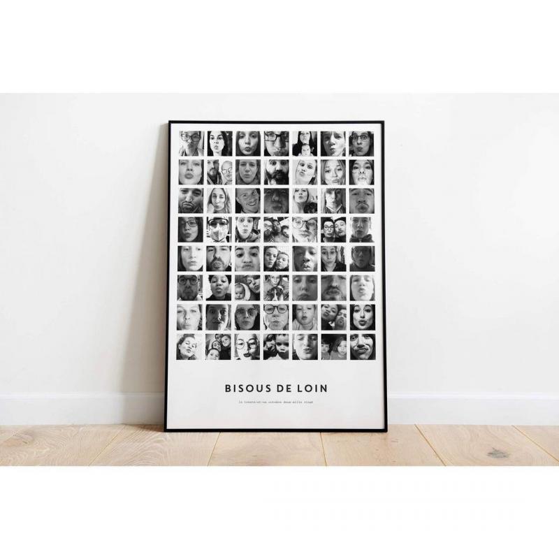 Op zoek naar een leuke, originele manier om iemand te zeggen dat je van hen houdt en aan ze denkt? Dan moet je bij Léon zijn, het creatief communicatiebureau van Éléonor en Constance. Tijdens de lockdown lanceerden ze 'Bisous de loin' (Kusjes van ver): een gepersonaliseerde fotolijst met een mozaïek van kussende portretten.