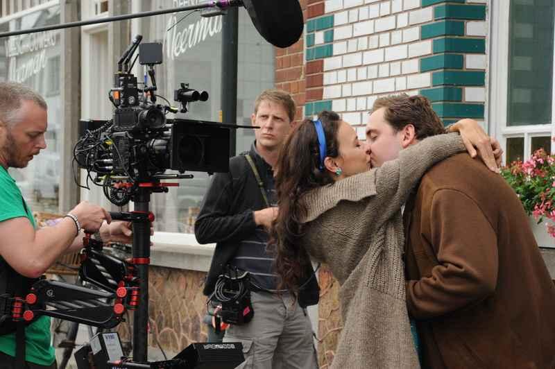 We hebben wel gelachen, maar ik was toch heel erg geconcentreerd om dat specifieke accent er goed uit te krijgen. Ik zag bovendien niet zo goed met die gekleurde lenzen en het was super warm met dat pak om me dikker te maken. Fysiek was ik dus op verschillende manieren zeer beperkt. Het waren ook de eerste drie maanden van mijn zwangerschap en ik voelde me soms moe en duizelig. Het was best wel een heftige tournage. Van vrolijk wat rondhangen en grapjes maken, was niet veel sprake. Ik was zeer gefocust.