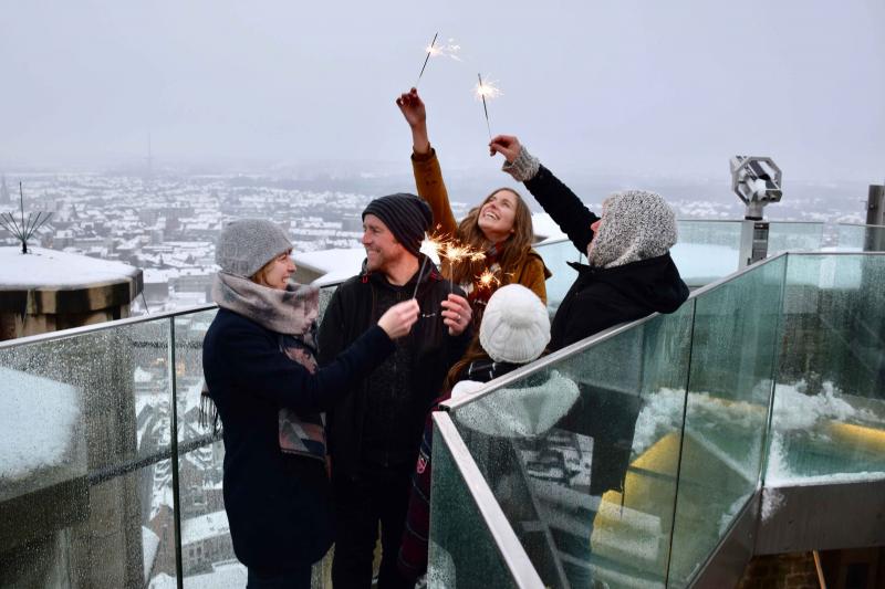 538 treden scheiden je van het adembenemende uitzicht op de skywalk van de Sint-Romboutstoren. Je kan op adem komen in één van de zes torenkamers. Of in allemaal. De bezoekersgids leidt je met interessante weetjes en opdrachten voor de jongsten doorheen de rijke geschiedenis van de Sint-Romboutstoren. Tot en met 7 januari kan je trouwens genieten van 25 % korting!