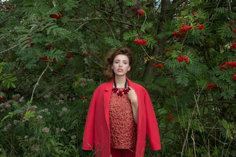 Jas - Nanuschka // T-shirt - Wolford // Rokje Samsoe & Samsoe // Kousen - Falke // Schoenen - Lolo // Tas - Brantano
