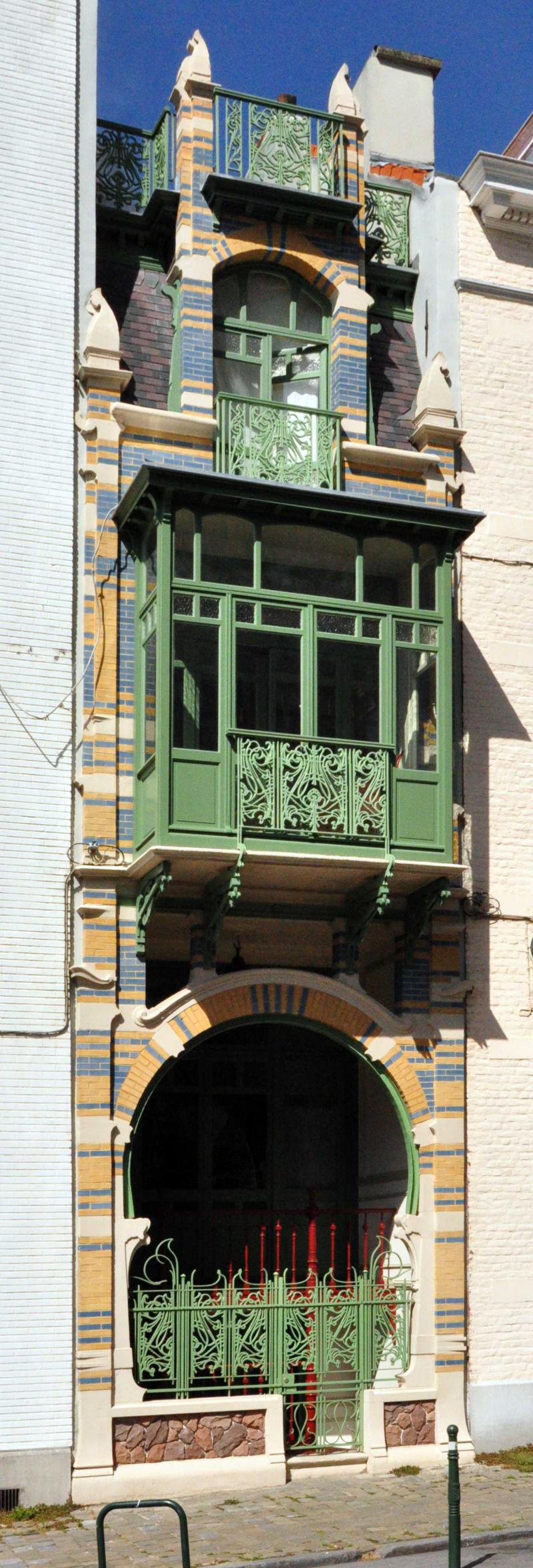 Elk weekend van oktober komt een andere Brusselse wijk aan bod. Bezoekers kunnen de locaties te voet, met de fiets of met de bus ontdekken. Wij trokken naar Schaarbeek. De tocht begon bij het Huis Autrique, het eerste belangrijke gebouw van Victor Horta, uit 1893. Daarna trokken we naar een school van Henri Jacobs, die opvalt door de ruime binnenhal en het gebruik van metalen constructies en sgraffito. Dat laatste is een schildertechniek waarbij men de verf rechtstreeks op de natte cement aanbrengt.