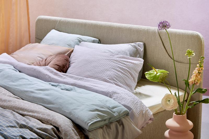 Zachte kleuren, aaibare stoffen, afgeronde vormen... Deze zomertrend is speels en brengt rust en harmonie in de slaapkamer. Ronde lijnen en vloeiende vormen zijn de basis en kunnen worden aangevuld met originele accessoires. Hier kiezen we voor één woord: comfy!