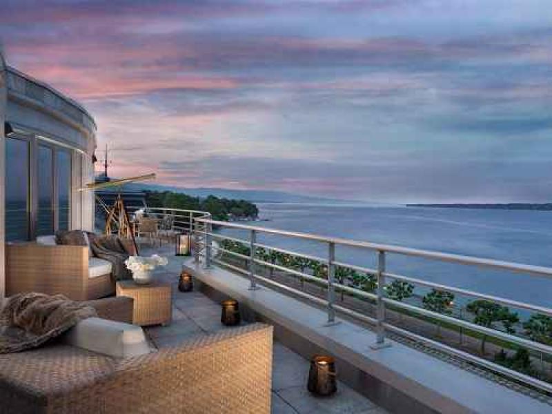 Wie naar Zwitserland reist en over heel wat poen beschikt, kan eventueel een nachtje boeken in het Hotel President Wilson. Vooral het penthouse met het uitzicht op het Meer van Genève spreekt tot de verbeelding. Niet alleen door het bedrag van 90.000 euro dat je er per nacht voor neertelt, ook de omvang van de suite is het vermelden waard.