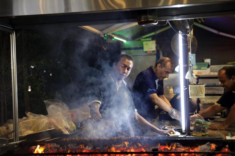Onze laatste avond in Singapore dineren we in Satay Street, een kleine straat verstopt tussen de skyscrapers waar je streetfood in zijn meest chaotische vorm aantreft. Het is zoeken naar een tafeltje om van de gegrillde rog en satés in pindasaus te kunnen smullen, maar dat is het meer dan waard. Afsluiten doen we op ongekende hoogtes. De bar Mr Stork brengt ons naar de 39ste verdieping van het Andaz Hotel. Met een cocktail – what else? – in de hand vergapen we ons aan de meest indrukwekkende skyline ooit.