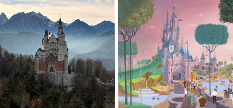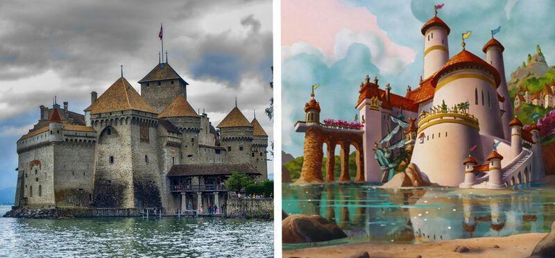 Laten we beginnen met de Kleine Zeemeermin. Het kasteel waar prins Erik woont is namelijk geïnspireerd op het 13-eeuwse Chateau de Chillon aan het meer van Genève in Zwitserland! Je herkent het kasteel aan de witte buitenkant met rode torentjes en de steil aflopende rotsen die het kasteel een strategische positie geven. Het schijnt een van de best bewaarde middeleeuwse kastelen van Europa te zijn, dus genoeg reden voor een bezoekje! Wie weet vang je nog een glimps van een zeemeermin op in het meer.
