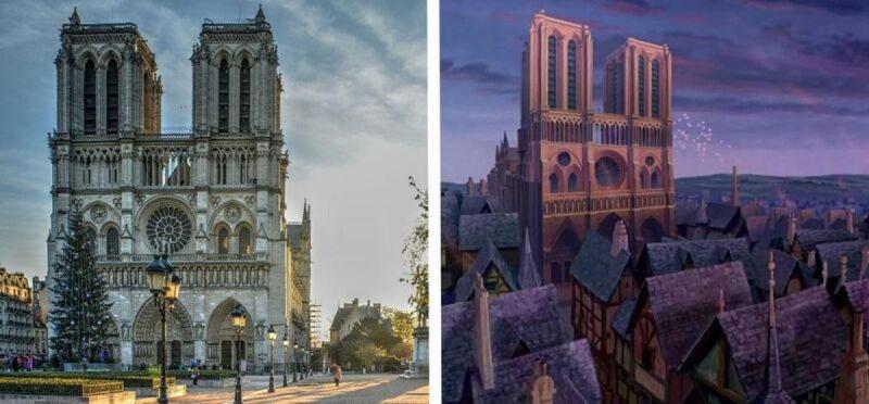 Het zal vast niet als een verrassing komen dat de Klokkenluider van de Notre Dame op de Notre Dame in Parijs is geïnspireerd. Helaas is de enorme kathedraal tijdelijk gesloten door een zware brand enkele jaren geleden, toch kan je nog steeds een glimps van de buitenkant opvangen. Fun fact: Walt Disney bedacht het sprookje niet zelf. Het verhaal werd namelijk door Victor Hugo bedacht in 1831. Dat is inderdaad dezelfde schrijver die Les Misérables schreef.