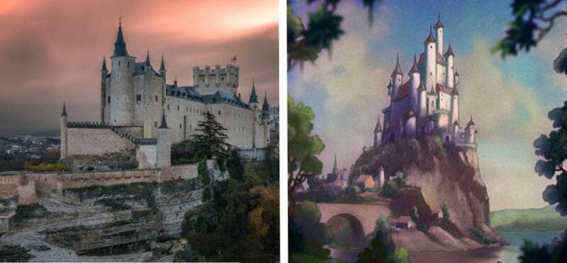 In Segovia in Spanje staat een kasteel dat wel heel veel overeenkomsten vertoont met het exemplaar van de boze koningin uit de film Sneeuwwitje en de Zeven Dwergen. Het gaat om het kasteel Alcázar van Segovia. Het sprookjesachtige kasteel werd in de 11de eeuw op de top van een grote berg gebouwd door koning Alfonso VI. Ook dit kasteel heeft een plekje bemachtigd op de UNESCO Werelderfgoedlijst.
