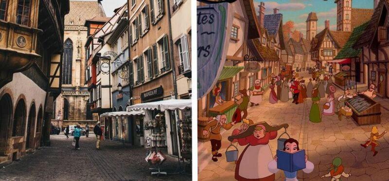 Het te schattige dorpje Eguisheim in Frankrijk vormt het decor voor het verhaal van Belle en het Beest. Het dorpje voelt qua architectuur een beetje Duits aan. Dat komt doordat dit deel van Frankrijk enige tijd in handen van Duitsland was. Eguisheim is trouwens goed te combineren met een roadtrip door de Franse regio de Elzas. De Elzas zit boordevol middeleeuwse dorpjes, kleurrijke pleintjes en groene wijngaarden.