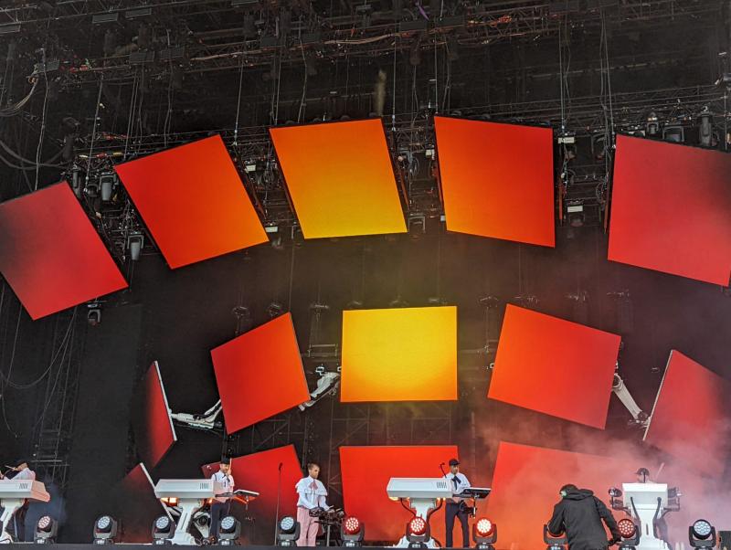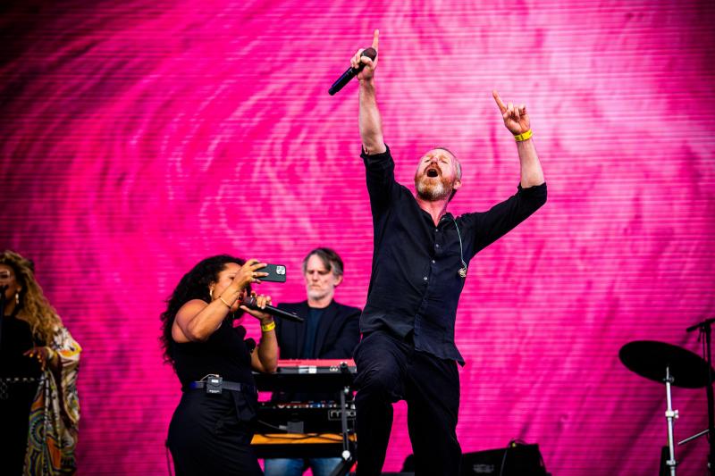 De extase kwam evenmin van de dromerige Texanen van Khruangbin, die het volgende uur mochten opdraven. De wei verviel in een gezapige trance, beneveld door de instrumentale indierockdampen. Zwoele songs vloeiden naadloos in elkaar over – een cynicus zou gewag maken van ‘eenheidsworst’ – tot plots, ergens in de staart van de set en subtiel ingebed in het liefelijke ‘People Everywhere (Still Alive)’, een verrukkelijke gitaarcover weerklonk van ‘Rhythm Is a Dancer’. De onweerstaanbare riff, die op elektronische gitaar gracieuzer overkomt dan onder de pompende eurobeats van Snap!, deed de zwijmelende massa op slag opleven. Handen gingen de hoogte in, kelen wijd open: de universele taal voor euforie. ‘People Everywhere (Still Alive)’ werd unaniem verkozen tot hoogtepunt van een al te gemoedelijke show, die in de gegeven omstandigheden – op klaarlichte dag, pal tijdens het middagdipje – nooit echt uit de verf kwam. In het slot van de set zaten enkele experimentele gitaarlijnen verweven, maar al met al misten we wat kruiding en punch in dit tussendoortje.