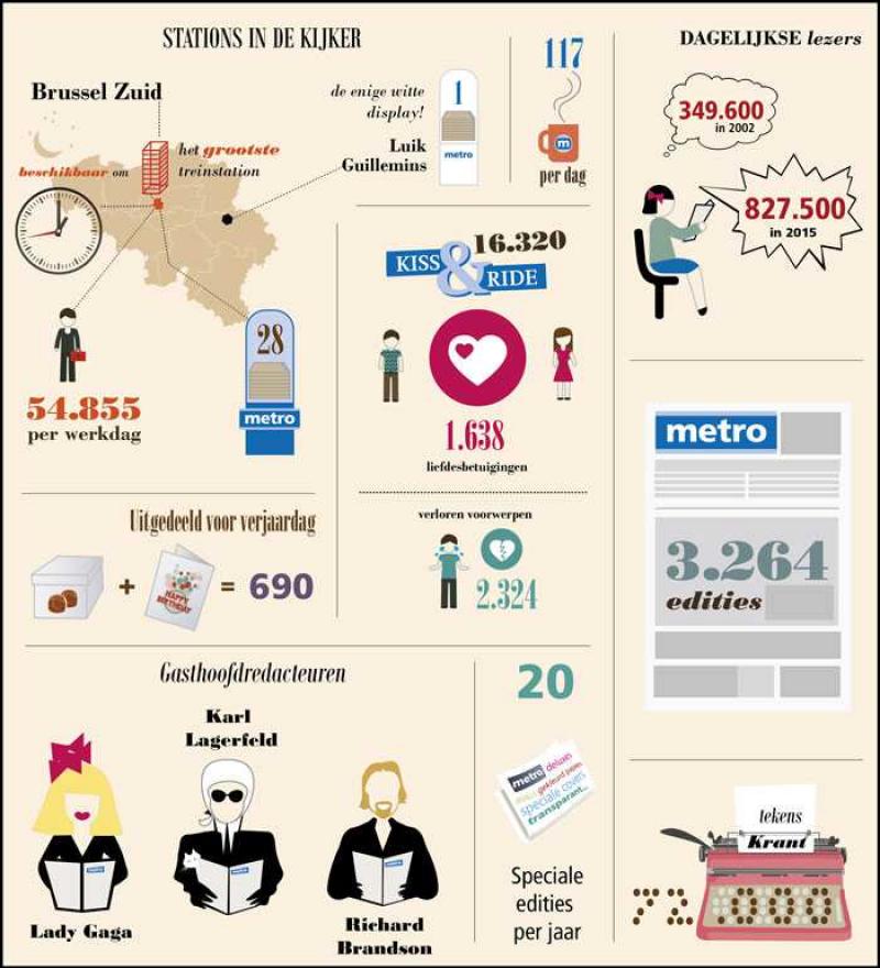 Vijftien jaar lang de Metro maken, daar komen heel wat woorden, koffie, computers, medewerkers, lezers en liefdesbetuigingen in de Kiss&Ride bij kijken. Een overzicht met de meest opmerkelijke cijfers.